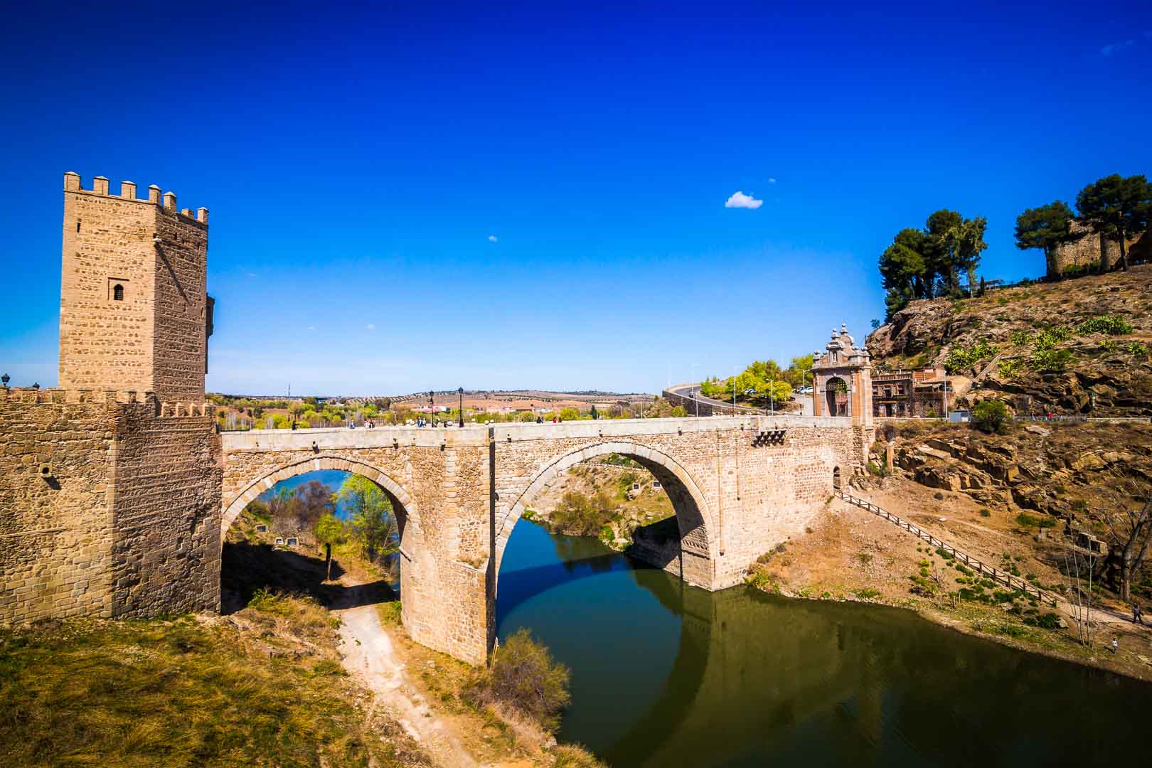 - Puente de Alcántara: Se mandó hacer en el 103 después de Cristo. Tiene 5 metros de altura, y si te asomas con cuidado podrás ver el rio Tajo, aunque no haya demasiado agua. Tiene dos arcos en cada punta que hace ver más bonito el puente. Es de acceso gratuito, sin horarios.
